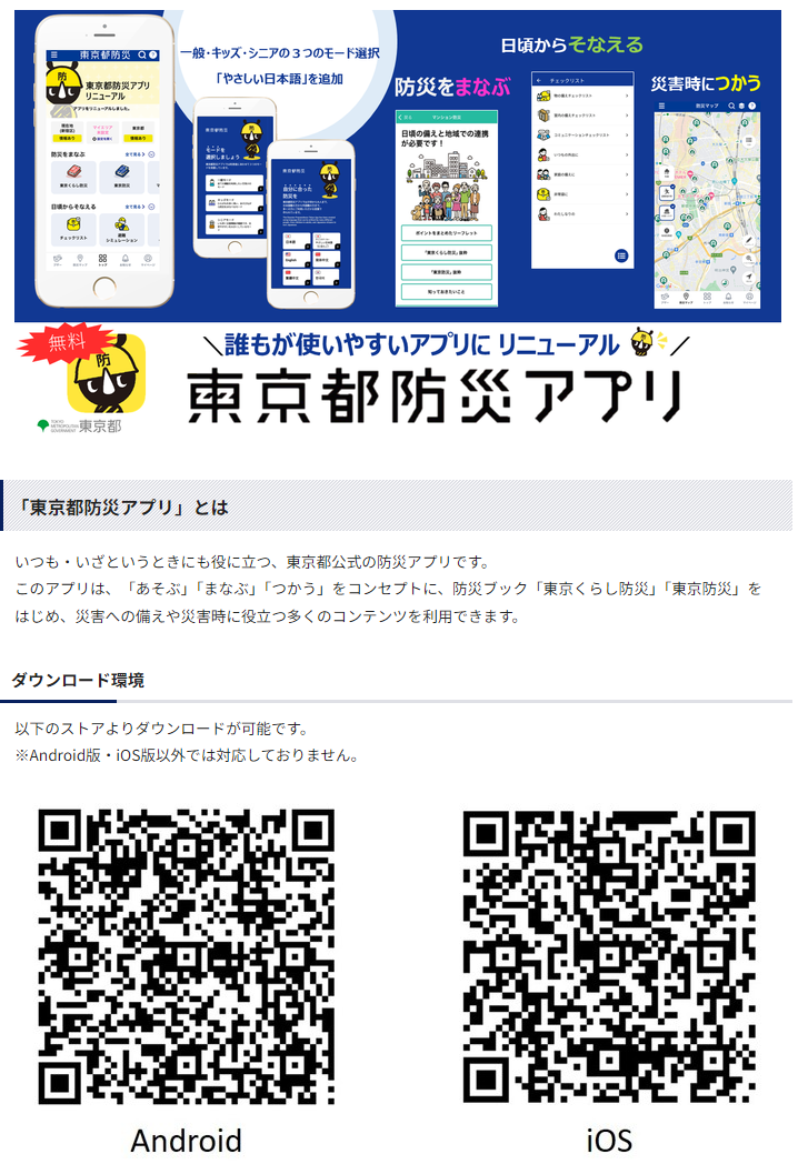 - 「東京都防災アプリ」をダウンロードしておいて下さい